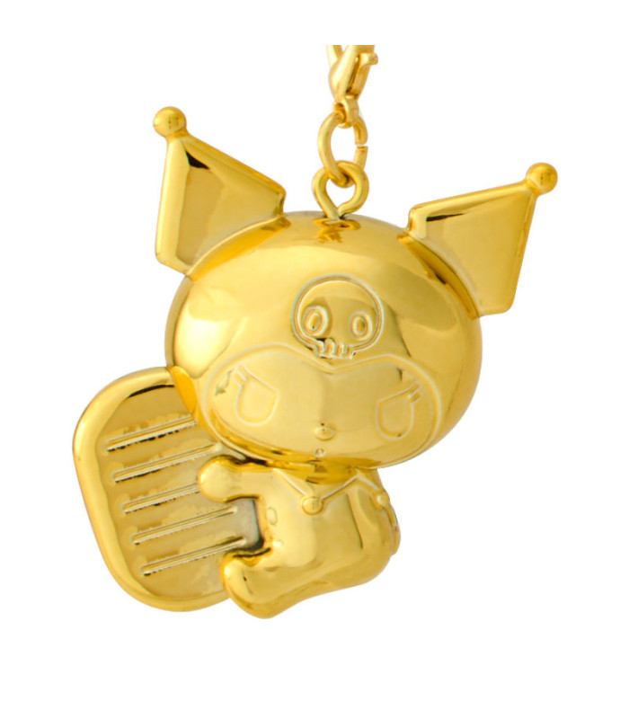 Gold-tone Kuromi zodiac lucky charm keychain in traditional netsuke style, perfect for adding a touch of good fortune to your keys, bag, or phone. Compact and collectible size: W3.1 x H3.9 x D2.4 cm.